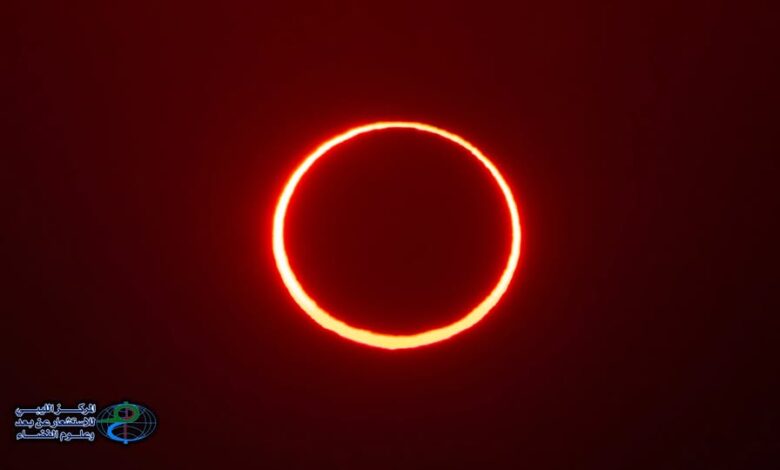 وأضاف المركز أن الكسوف الحلقي يحدث عندما تصطف الشمس والقمر والأرض تقريبًا على خط واحد، بحيث يكون القمر في المنتصف، ويكون عند أبعد نقطة له عن الأرض في مداره، ما يعرف بنقطة الأوج القمري، وبسبب هذا البعد، يظهر القمر أصغر حجمًا من الشمس، فلا يتمكن من حجب ضوئها بالكامل، لتبقى حلقة مضيئة حول قرص القمر.