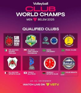 فريق السويحلي للكرة الطائرة يدشن اليوم الثلاثاء ظهوره التاريخي الأول في بطولة العالم للكرة الطائرة للأندية في نسختها العشرين، التي تستضيفها البرازيل بمدينة بيليم في الشمال البرازيلي، خلال الفترة من 16 الى 21 من شهر ديسمبر الجاري، بمواجهة فريق بيروجيا الإيطالي بطل أوروبا ويطمح فريق السويحلي إلى الظهور بأفضل صورة له في البطولة وتقديم أداء يليق بسمعة الكرة الطائرة الليبية والأفريقية، وترك بصمة إيجابية في أول مشاركة لنادي ليبي في بطولة كأس العالم للأندية للكرة الطائرة.