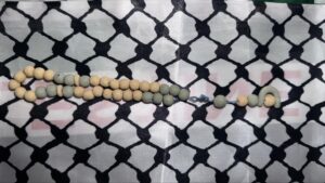 فبعد ثلاثة أيام من الاحتجاز، حاولت أن أصنع مسبحة من بقايا الزيتون وخيط نزعته من بطانيتي، ولكن فشلت المحاولة، بعدها دخلت الحمام، وخرجت، طلبوني للتحقيق، ورجعت منه للزنزانة وعدت للحمام مرة أخرى، في هذه المرة عثرت على “حبوب خرز” في كيس داخل الحمام، فرحت بها وسألت مرافقي في الغرفة إن كانت لأحدهم؟ فأخبروني أنها ليست لهم، وكنت العربي الوحيد بينهم، كان معي مكسيكسي وبرازيلي وفرنسي وتركي، وبدأت في صنع مسبحة صغيرة من 33 حبة، استغربت من الموقف، والسبحة لا تزال معي حتى الآن، وهي من أكثر الأشياء التي فرحت بها وصبرتني في السجن.