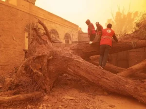 وقد أوضح مركز الأرصاد الجوية أن العاصفة الرملية التي ضربت جنوب وشرق ليبيا “غير معتادة”. تجاوزت سرعتها مائة كيلومتر في الساعة. وأن أضرارها كانت أكثر من المتوقع.