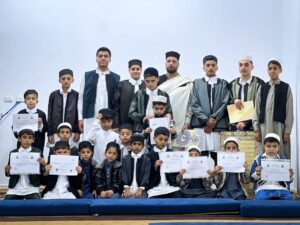 أتم الطالب “الواثق بالله الصادق المبروك الحسناوي” حفظ القرآن العظيم كاملا بمسجد مولاي محمد بالعاصمة طرابلس على يد الشيخين “جمال أبومنجل”، و”محمد رمروم”.