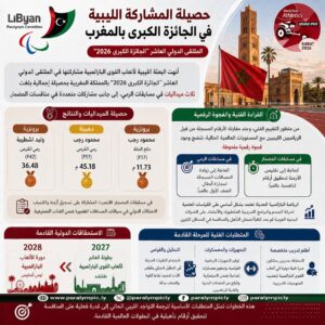 اختتمت البعثة البارألمبية الليبية مشاركتها في ملتقى الجائزة الكبرى بالمغرب بحصدها لثلاثة قلائد، واحدة ذهبية، وبرونزيتين.