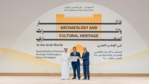 واستلم الدكتور محمد فرج محمد رئيس مصلحة الآثار الليبية، شهادة تسجيل موقع “قرية تونين” الواقعة بمدينة غدامس الليبية خلال الحفل الذي أقيم بالدوحة القطرية في ختام الدورة 27 لمؤتمر الآثار والتراث الحضاري في الوطن العربي.