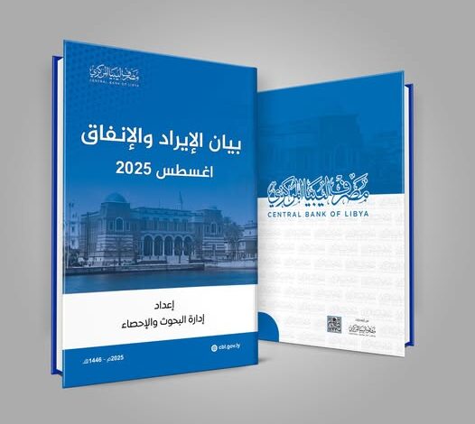نشر مصرف ليبيا المركزي بيانه الشهري للإيراد والإنفاق العام الذي يغطي الفترة من الأول من يناير وحتى نهاية اغسطس 2025م.
