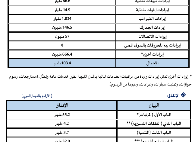 ومن الأرقام التي نشرها في بيانه الأخير أن قيمة المرتبات بلغت وحدها (55.2) مليار دينار ليبي.