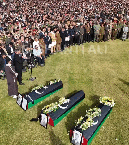في ثلاث جنازات مهيبة شيعت جثامين رئيس الأركان العامة بالجيش الليبي ورفاقه الذين قضوا في تحطم طائرة أثناء عودتهم من مهمة رسمية في تركيا، حيث احتضن ثرى قصر بن غشير ومصراتة وغريان خمسة من رجال الوطن.