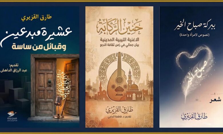 وأوضح “القزيري” أن الإصدارات تتنوع في موضوعاتها وأشكالها، حيث يصدر ديوانه الشعري الجديد بعنوان “ببركة صباح الخير.. نصوص لامرأة واحدة” عن دار الرواد للنشر، فيما يصدر عن مكتبة طرابلس العالمية كتابان، الأول كتاب “حنين الرَّكاّبة: قراءات في الأغنية المدينية الليبية”، وقدّمت له الدكتورة “فاطمة الحاجي”، أما الكتاب الثاني فهو “عشيرة مبدعين، قبائل من ساسة: حوارات مع مثقفين ليبيين”، وقدم له الصحفي “عبد الرزاق الداهش”، ويضم مجموعة من الحوارات الصحافية مع شخصيات ثقافية ليبية.