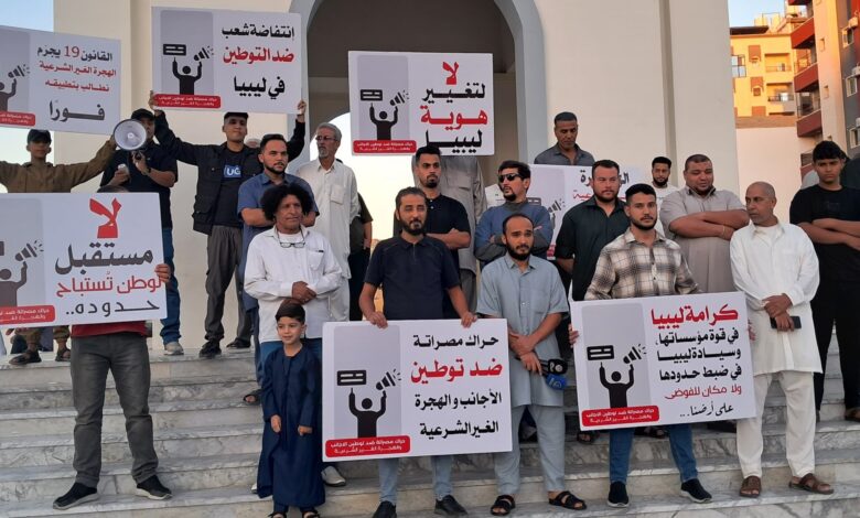 عاود “حراك مصراتة ضد توطين الأجانب والهجرة غير الشرعية” وقفاته للمطالبة بتطبيق القانون ضد الهجرة غير الشرعية، والترحيل الفوري للمتسللين.